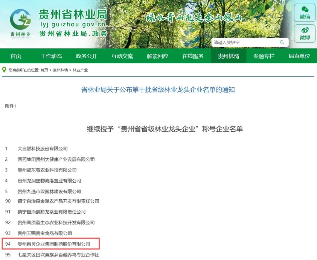 近日,贵州省林业局公布第十批省级林业龙头企业名单。经严格程序评定,贵州百灵企业集团继续被授予“贵州省省级林业龙头企业”称号。这是自第七批新认定以来,公司连续第四次获此殊荣,彰显了公司在林业产业领域持续稳固的综合实力与示范引领作用。